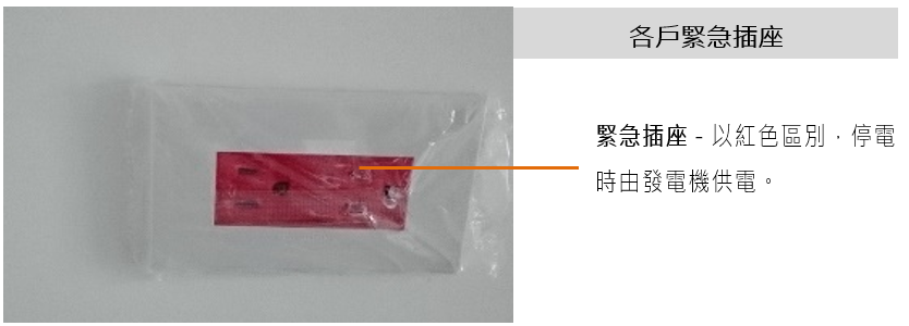 - 平時發生停電時,發電機針對室內提供用戶替代用電(如下圖所示),敬請各用戶在緊急用電期間務必要節省用電,以防止發電機超載。