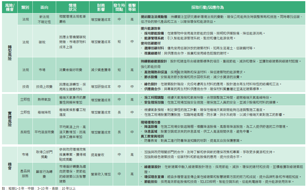 相關風險的衝擊與影響,檢視企業經營機會並研議相應對策及因應作為,採系統性方法納入年度計畫執行作業。